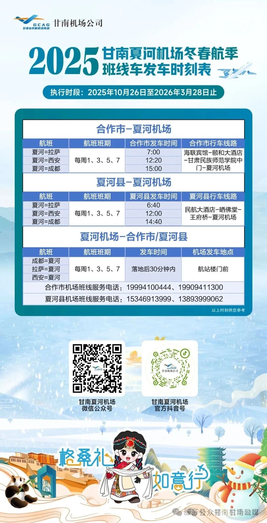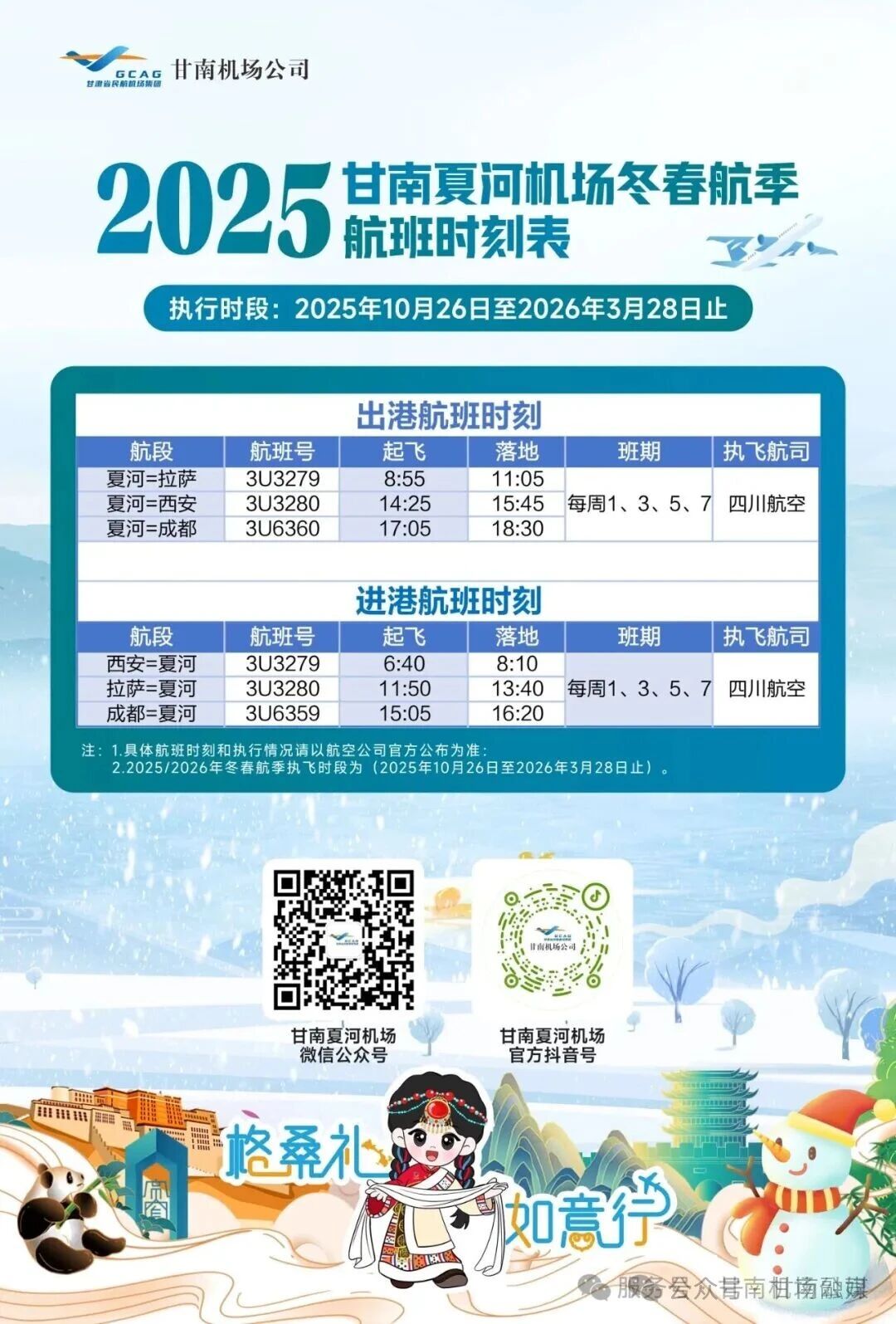 收藏查看|夏河机场10月26日起执行冬/春航季航班计划~