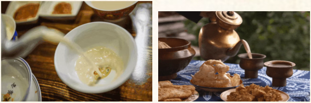 酥油茶是藏族人民日常生活中不可或缺的饮品,也是夏河美食文化的重要组成部分。它以酥油、茶叶和盐为主要原料,经过精心熬制而成。秋日晨风吹着草原凉意,喝一口热酥油茶,一口下去,暖意从舌尖蔓延到指尖,瞬间驱散了秋日微凉。