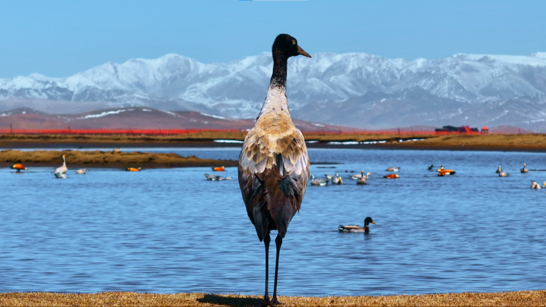现场,数十只棕头鸥在热尔钦湖周边的开阔水域停歇、觅食,洁白的身体搭配标志性的红色喙部与脚爪,繁殖期头部呈现出鲜明的棕褐色,体态轻盈、姿态优雅;不远处,白鹭亭亭玉立在浅滩上,苍鹭伸展长颈伺机捕食,白琵鹭则迈着修长的腿在浅水中漫步,用独特的琵琶状喙部探寻食物,鸬鹚成群停歇在一旁,偶尔潜入水中捕捉鱼虾,几只野鸭在水面嬉戏游弋,黑颈鹤则在远处草地悠闲踱步,各类水鸟相映成趣,构成一幅生机盎然的湿地画卷,记者及时用镜头记录下这一珍贵瞬间。