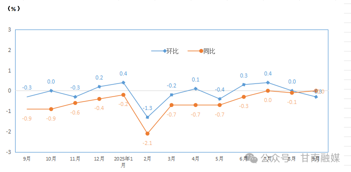 2025年9月份,甘南居民消费价格同比持平。其中,食品价格下降1.9%,非食品价格上涨0.5%;消费品价格下降0.2%,服务价格上涨0.4%。1-9月平均,甘南居民消费价格比去年下降0.4%。