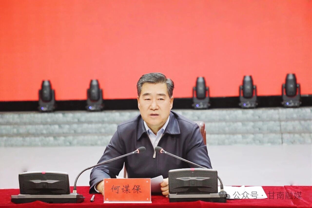 何谋保强调,要坚持爱国和爱党、爱社会主义高度统一,深化拓展“感恩共产党、奋进新时代”和“国家意识、公民意识、法治意识”教育成果,扎实开展宗教界“学法规、守戒律、重修为、树形象”教育活动,引导僧俗群众树立正确的国家观、历史观、民族观、文化观、宗教观,不断增进“五个认同”,旗帜鲜明反对分裂,坚决维护社会稳定和民族团结。要有形有感有效铸牢中华民族共同体意识,培育打造沿洮民族团结进步创新区联创共建载体品牌,更好促进民族和睦、宗教和顺、社会和谐。要坚持我国宗教中国化方向,坚持独立自主自办原则,以社会主义核心价值观为引领,更好融入中华文化、体现中国特色,积极引导藏传佛教与社会主义社会相适应。要依法加强宗教事务管理,深入开展相关法律法规宣传教育,学法懂法守法,严格规范执法,从严落实僧人外出请销假、员额管理、宗教活动审批、财税监管等制度,着力破解宗教领域重点难点问题,提升宗教界加强自我教育、自我管理、自我约束水平。