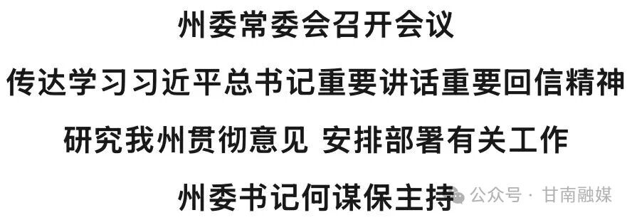 会议传达学习了习近平总书记在党的二十届四中全会上的重要讲话和全会精神,对学习、宣传、贯彻工作进行再安排、再部署。会议强调,要把学习好宣传好贯彻好党的二十届四中全会精神作为当前和今后一个时期的重大政治任务,全面系统学习,分级分层培训,广泛开展宣讲,精心做好宣传,推动全会精神在甘南落地落实。要对标国家所向、发展所需、群众所盼,聚焦维护稳定、生态保护、产业发展、科技创新、乡村振兴、区域发展、民生保障等重点领域,精心谋划一批含新量、含金量、含绿量足的大项目好项目,完善贯彻落实的政策举措,创新推进落实的载体抓手,为“十五五”发展提供坚实支撑。要加强党的全面领导,持之以恒推进全面从严治党,常态化长效化推进党的作风建设,坚定不移开展反腐败斗争,为“十五五”时期全州经济社会高质量发展提供根本保证。