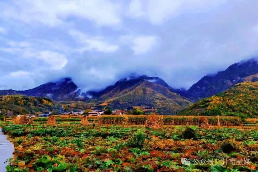 沿着簪花之路向深处去,秋意便渐渐有了人间的温度。千年摩崖石洞静默俯瞰河谷,岩壁上岁月蚀刻的纹路如古老地图,在秋阳下泛着温润光泽,那是时光写下的深邃注脚,记录着山河变迁的无言史诗。山腰的杂木林正燃烧着深深浅浅的红与黄,而山底的农田里,荞麦依然挺立,如同时间的坐标,标记着收获与冬藏的分界。