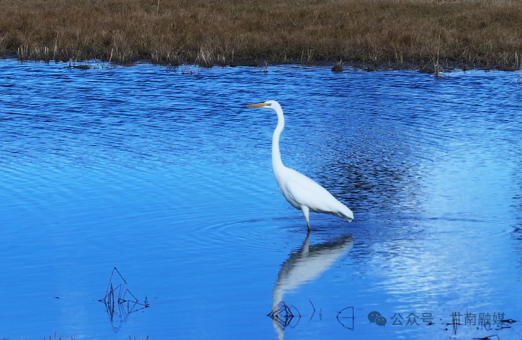 初冬时节,记者在河曲马场湿地惊喜发现,十几只白鹭正优雅踱步、低头觅食,洁白的身影与澄澈的水域、泛黄的草甸相映成趣,构成一幅灵动的秋日生态画卷。