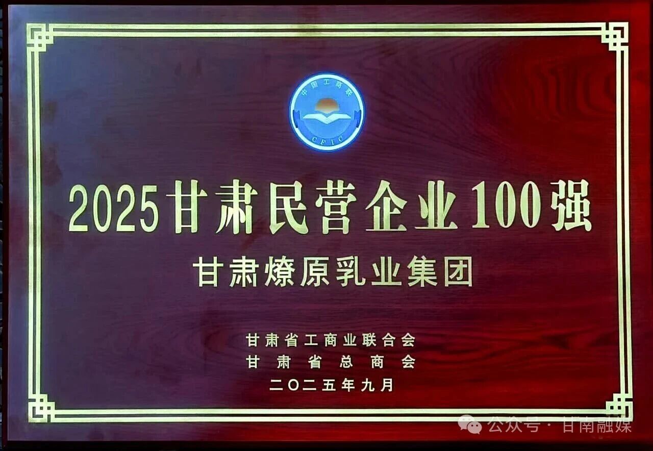 2025年“民企陇上行”暨甘肃民营企业100强发布会上,甘肃燎原乳业集团凭借其卓越的综合实力与持续稳健的发展态势,连续第二年获得该项殊荣。