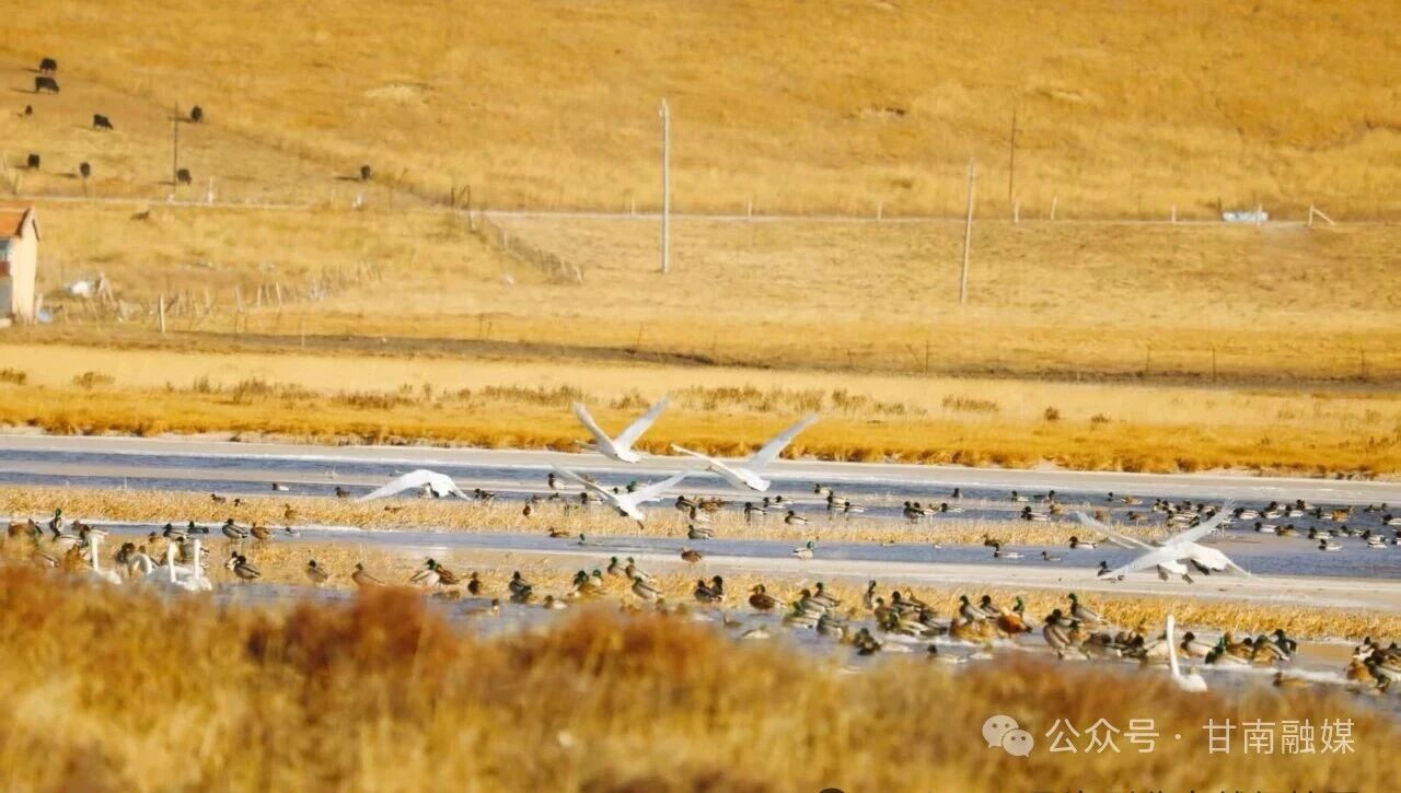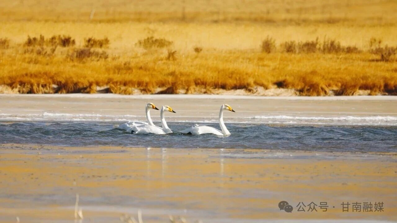 初冬时节,寒意渐浓,尕海国际重要湿地内的郭茂湿地,迎来了一批远道而来的“贵客”——首批13只越冬大天鹅已翩然抵达,在此安然栖居。