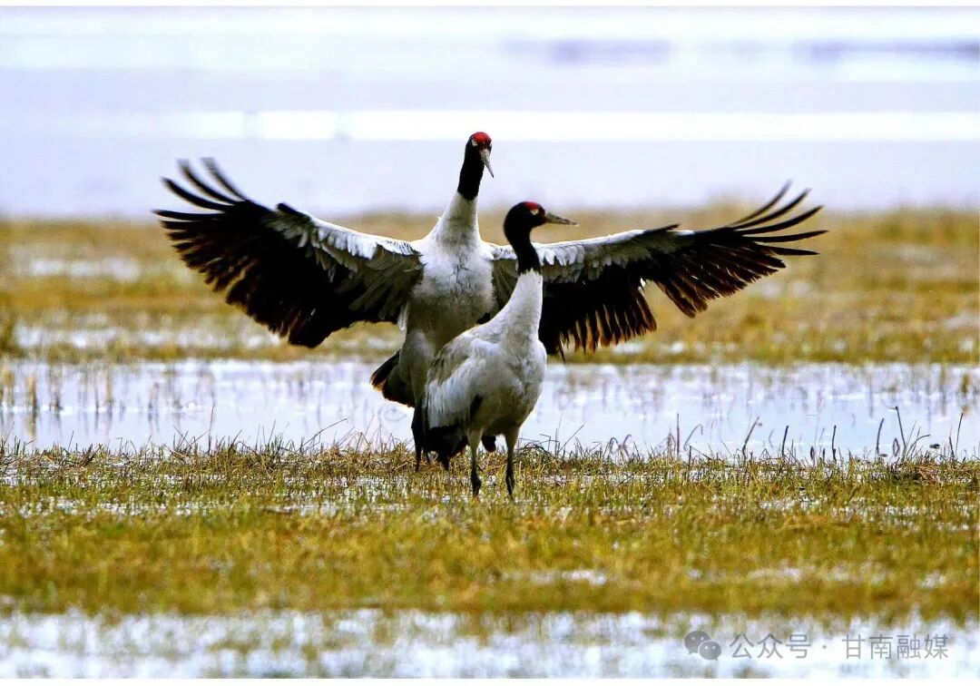 在海拔3000多米的甘肃尕海则岔国家级自然保护区,一群被誉为“高原神鸟”的黑颈鹤在波光粼粼的尕海湖畔悠然踱步。不远处,数台隐蔽的红外相机正静静记录着这一幕。这幅生机盎然的画卷,是碌曲县深入践行生态文明思想,坚决守护黄河上游生态安全屏障的生动缩影。