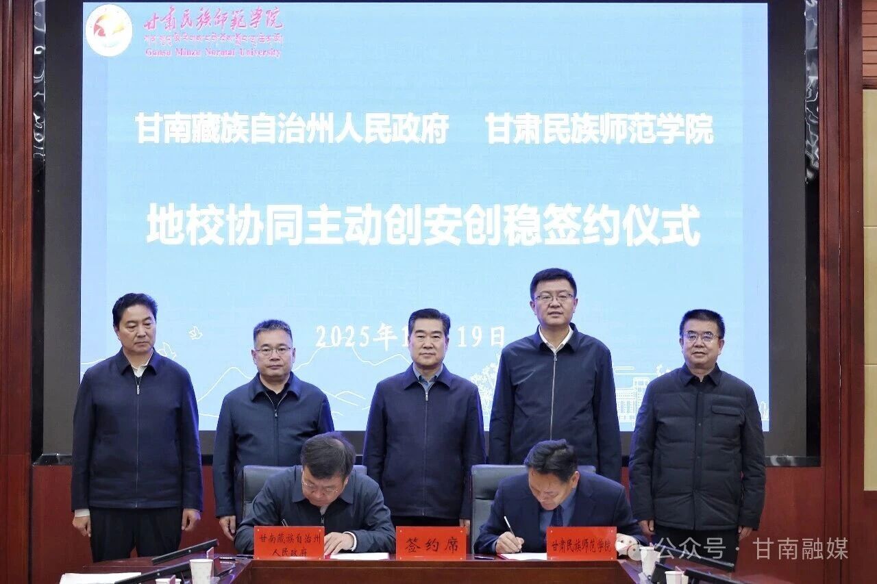 12月19日,甘南州人民政府与甘肃民族师范学院签订地校协同主动创安创稳框架协议。州委书记何谋保,甘肃民族师范学院党委书记贡力出席并见证签约。