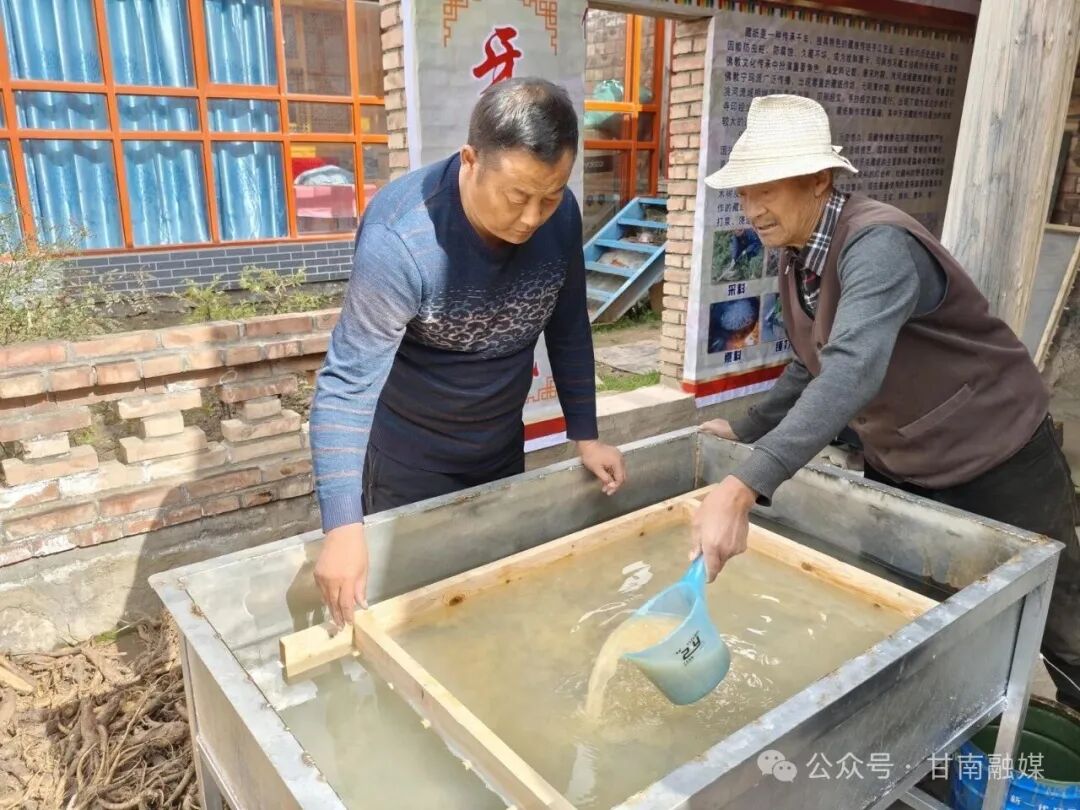 在临潭县术布乡牙关村智秀才让家中,藏纸技艺传承人智秀才让向记者展示了藏纸遇水而墨迹不散的独特品质。经改良后的藏纸呈现出细腻的皮质质感,兼具传统韵味与现代审美,让这门拥有近千年历史的非遗技艺,在守护与创新中点亮了文明传承。