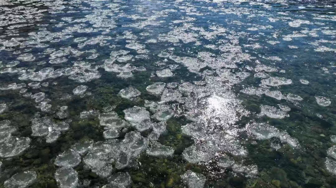 从上游款款而来,黄河水仿佛被冬日的静谧赋予了别样的澄澈。往日里裹挟着泥沙的浊浪,此刻变得清澈见底,好似一条镶嵌着碎钻的银色哈达,在广袤的草原上舒展。