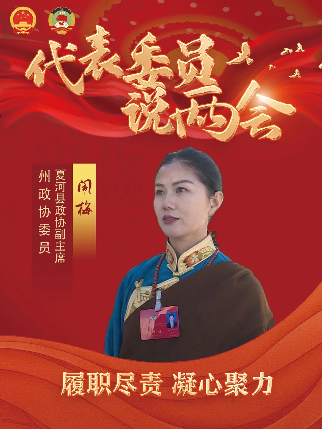 作为州政协委员和政协工作者,过去一年州政协委员、夏河县政协副主席闹梅围绕基层治理、民族团结、安全生产等主题深入开展调研,形成风险排查报告与政策建议,及时反映群众关切,推动矛盾化解在前端。通过推动政协协商与基层治理相结合,助力完善矛盾纠纷多元化解机制;联合专家和群众代表开展环保评议,促进突出问题整改;针对中小微企业困难、人才引进等堵点举办政企协商会,助力政策优化;并发挥政协联系广泛的优势,为地方引进项目、技术和资金牵线搭桥。闹梅满怀期待地表示,将以此次会议为新起点,以更饱满的热情、更务实的作风,认真履行双重职责,带头深入学习,准确把握“五个坚持”的精神实质,切实把思想和行动统一到州委决策部署上来;坚持精准建言,紧扣三大任务,结合夏河实际,重点围绕促进民族团结、培育特色产业等领域,深入开展调研,提出务实管用的建议;着力凝聚共识,发挥政协优势,积极宣传政策、反映民意、协调关系,为改革发展汇聚正能量;持续提升能力,按照“懂政协、会协商、善议政”的要求,不断提高履职水平,同时努力为委员履职提供更好服务保障。