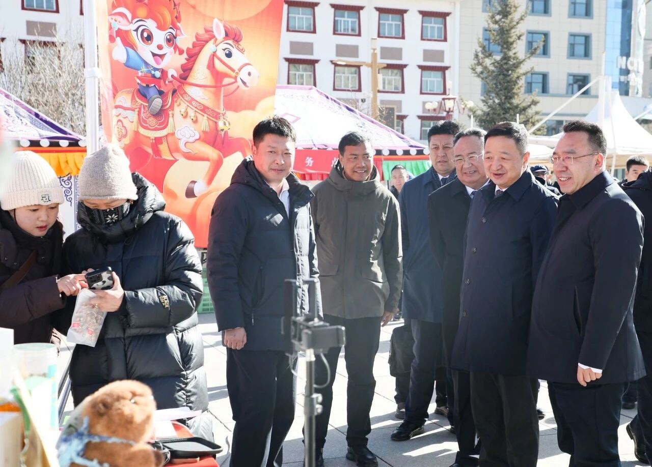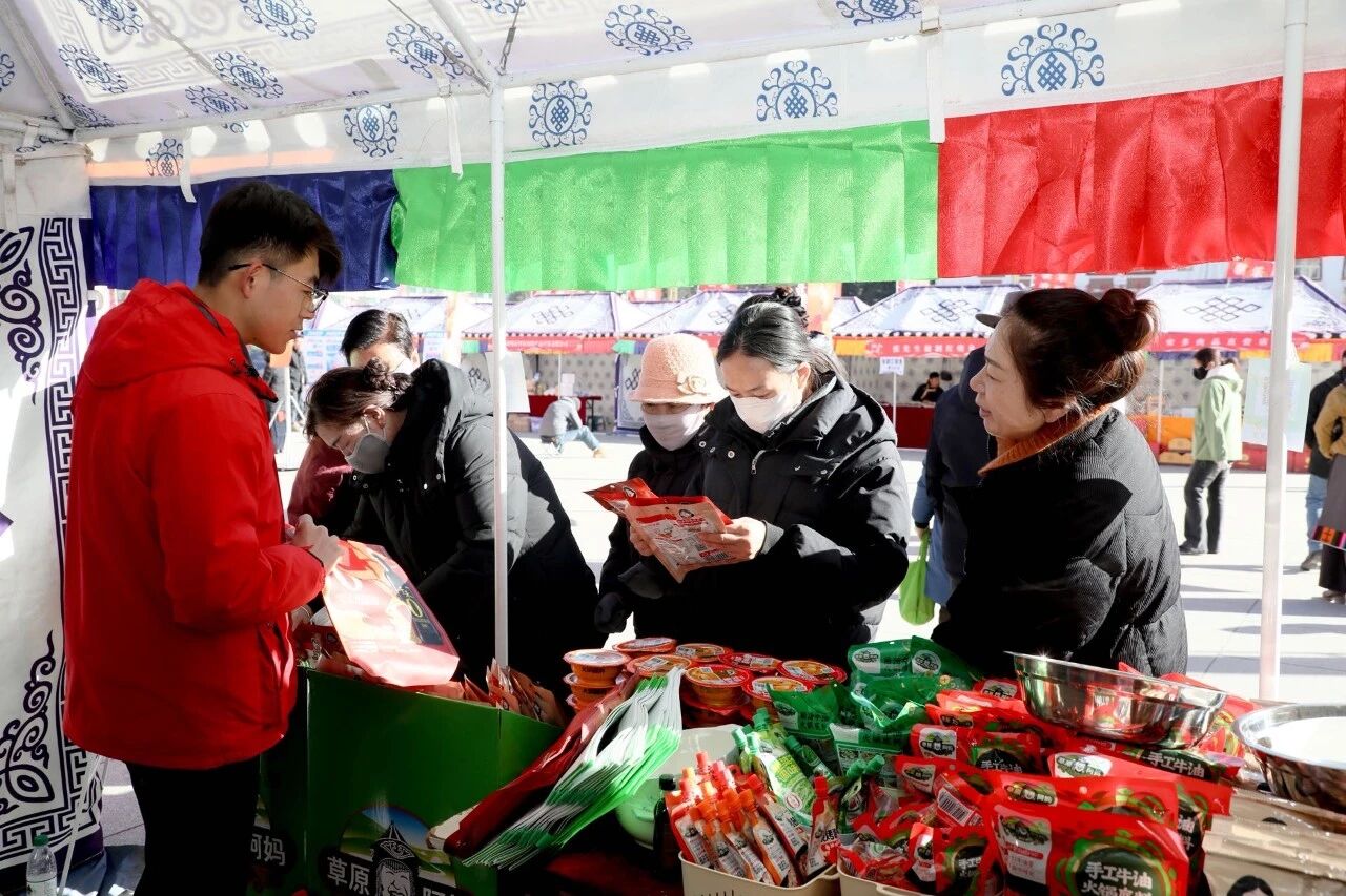 冬日的香巴拉广场暖阳高照、人潮涌动,展销现场各类农畜特产品琳琅满目、整齐陈列,商户的吆喝声与群众的问询声交织,洋溢着辞旧迎新的祥和气息。杨武一行缓步穿行于各个展位,与参展商户亲切交谈,细致询问商品销售、特色产品推广以及现场安全保障措施落实细节等。