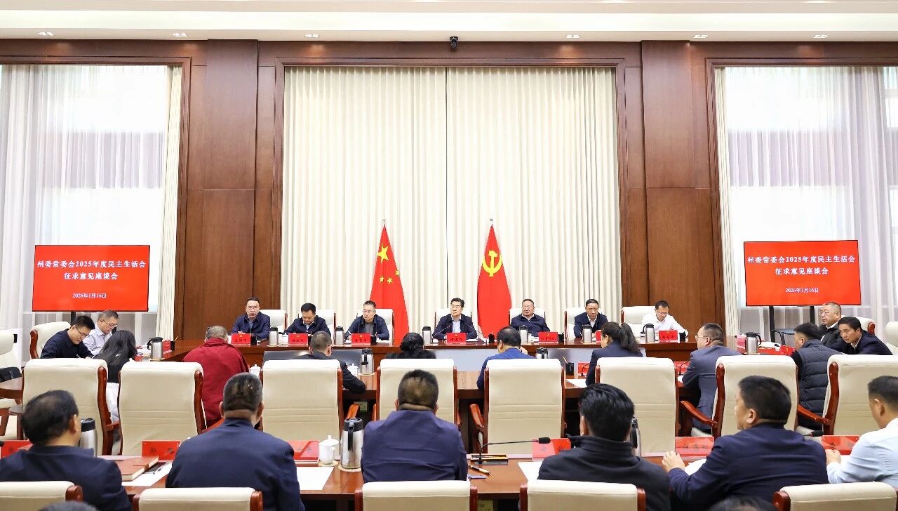 1月16日,州委书记何谋保主持召开座谈会,就高质量开好州委常委会2025年度民主生活会,面对面征求部分“两代表一委员”、企业界代表、宗教界代表、离退休干部代表、基层群众代表的意见建议。他强调,要深入学习贯彻习近平新时代中国特色社会主义思想,全面贯彻落实党的二十届四中全会精神,以打攻坚战、持久战的决心和恒心,锲而不舍落实中央八项规定精神,推进作风建设常态化长效化,以优良作风凝心聚力、真抓实干,奋力开创中国式现代化建设新局面。