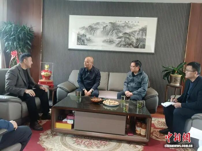 图为杨海强(左二)为刘小成(左一)解答企业遇到的问题。(资料图)受访者供图