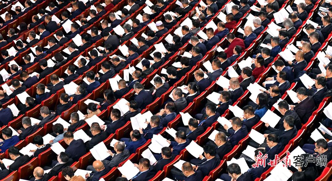 甘肃大剧院内灯光璀璨,气氛庄重热烈。中国人民政治协商会议会徽悬挂在主席台正中,十面鲜艳的红旗分列两侧。二楼眺台上,“紧密团结在以习近平同志为核心的党中央周围,加快建设幸福美好新甘肃、不断开创富民兴陇新局面,奋力谱写中国式现代化甘肃篇章!”的巨幅标语,鼓舞人心,催人奋进。