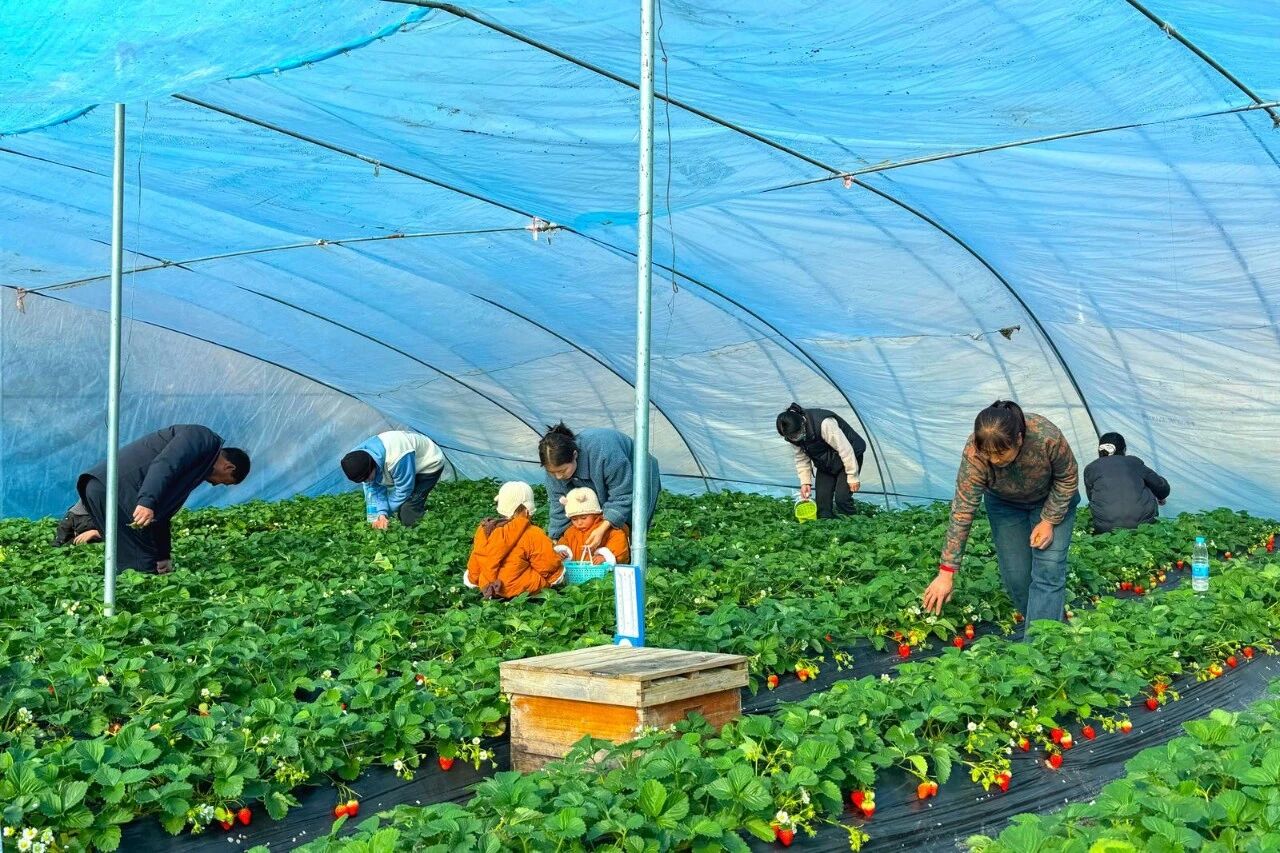 “这里的草莓品质特别好,一口咬下去全是香甜味。周末特意带孩子过来,不光是采摘草莓,更是想陪孩子度过一段难得的亲子时光,让孩子亲身感受田园采摘的乐趣。”游客姚红芳笑着说道,言语间满是喜悦。