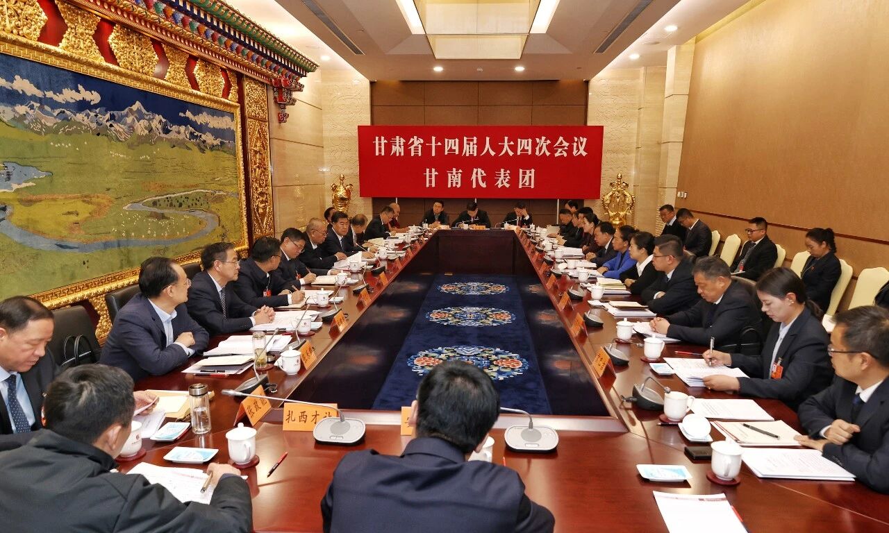1月27日至28日,参加甘肃省第十四届人民代表大会第四次会议的甘南代表团在甘肃大剧院甘南厅,认真审议省政府工作报告、审查“十五五”规划纲要草案,为全省经济社会高质量发展建言献策。省人大代表、州委书记何谋保主持代表团会议。
