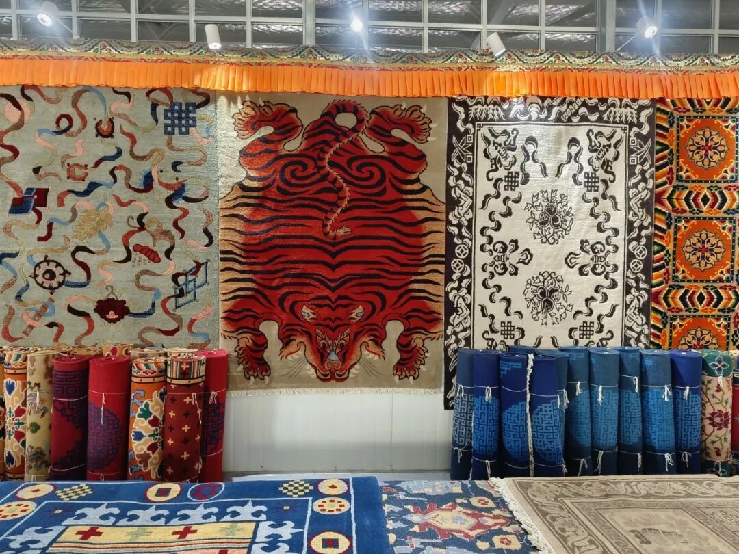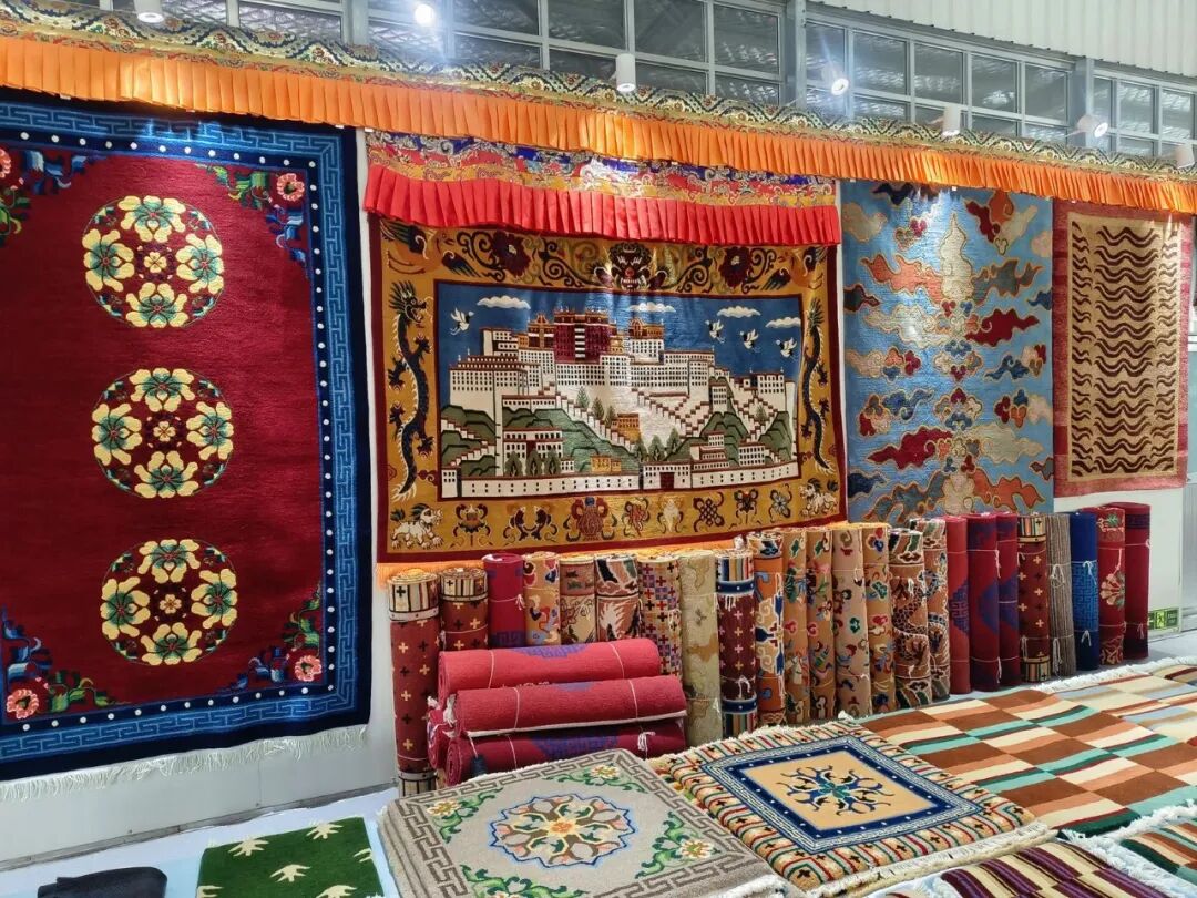 在公司的生产车间里,三十多位手工艺人正俯身于传统木质织机前,手中彩线穿梭,有节奏的“嗒嗒”声此起彼伏。他们正在制作一批出口日本的手工藏毯。这些藏毯选用甘南高原特有羊毛与牛羊绒,历经选毛、洗毛、纺纱、染色、编织等十多道工序。一条3×4米的藏毯,需四位熟练工人耗时近两个月进行平毯、剪花、洗毯等精加工,在日本市场可售得5万多元人民币。