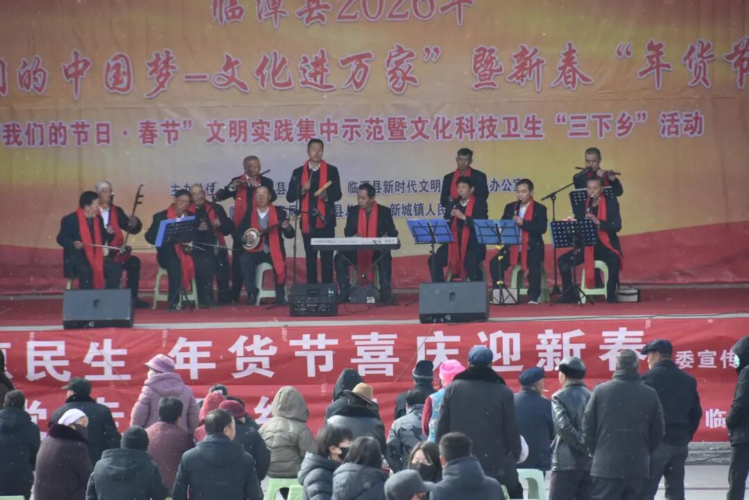 热闹的不仅是街巷的市集,新城镇文化广场上更是暖意融融。在新城廿一营启幕时,文艺演出同步登场,为这场民俗市集增添热闹喜庆的氛围。《梦回洮州》《高原红》《花儿与少年》等节奏欢快的节目轮番上演,演员们用歌舞传递着新春的喜悦,台下观众掌声不断、喝彩连连,演出的旋律与街巷的市集烟火相融共生,勾勒出一幅喜庆祥和的新春画卷。天籁飞歌舞蹈队领队宁馨说:“今天正值腊月廿一营,我们来新城表演节目,开展文化下乡惠民演出,为群众献上文化盛宴,为即将到来的新年营造喜庆快乐的热闹氛围。”小演员成佳馨用传统乐器为节日添彩,“能在家乡的春节前,用古筝给乡亲们表演,我特别开心。”在成佳馨看来,古筝的旋律既衬托出节日的喜庆,也传递着传统文化的厚重,希望能让乡亲们在欢声笑语中感受中华传统乐器的魅力,让民俗与文化在新春里交融绽放。