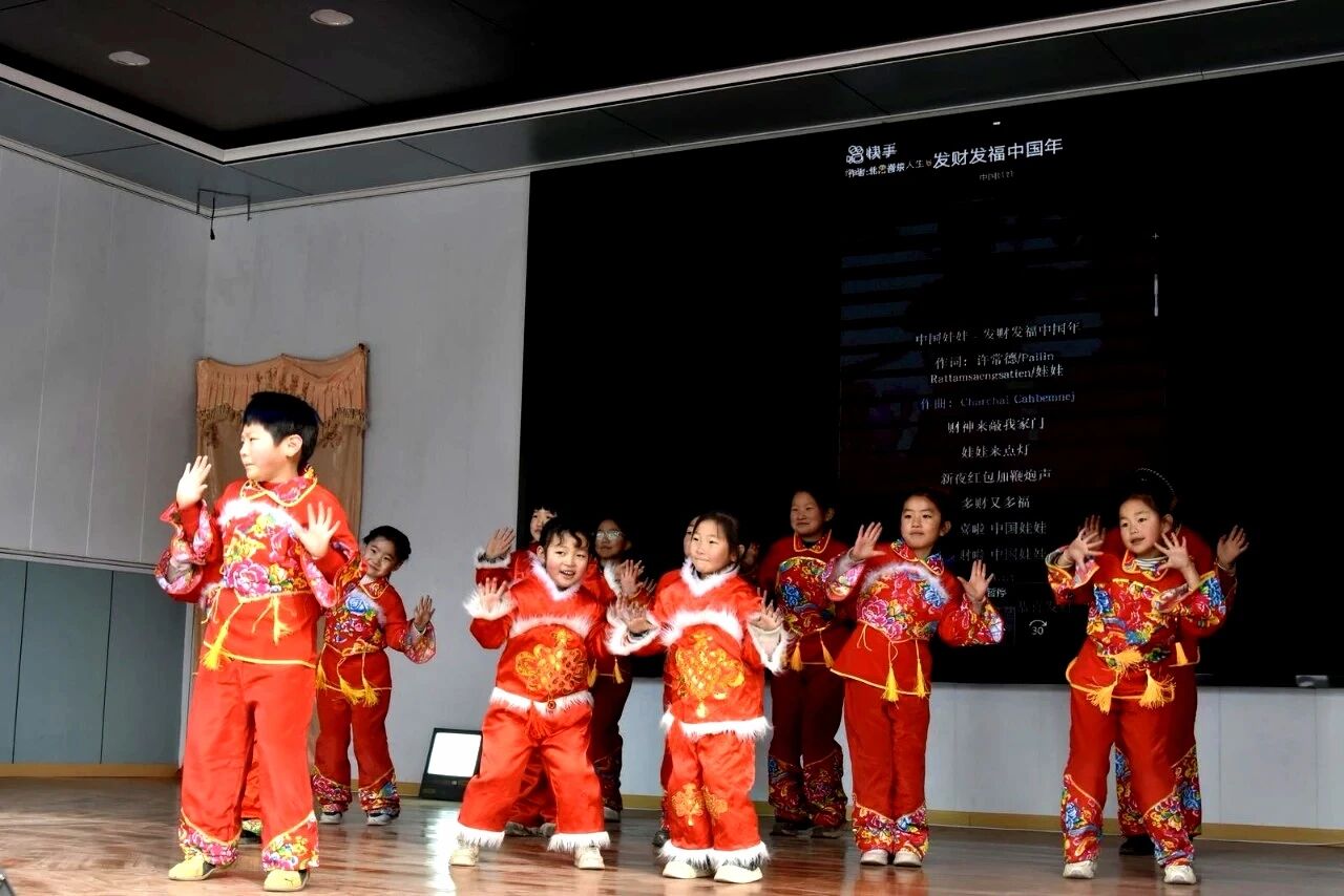 在新城镇范家咀村文化广场,同样是一派欢腾的排练景象。二十余名身着节日盛装的小演员,在老师的耐心指导下,认真排练《吉祥如意》《雪域踢踏》《白龙马》等经典舞蹈节目。孩子们踮着脚尖、挥动衣袖,跟着欢快的旋律翩翩起舞,稚嫩的脸庞上洋溢着专注与喜悦,一举一动满是童真。台下的小观众们被精彩的排练深深吸引,纷纷跟着节奏模仿动作,整个广场充满了欢声笑语与童趣盎然。“过年能和小伙伴们一起跳舞特别开心,我们要把最棒的表演献给大家,祝大家马年新年快乐、万事顺遂!”小演员房萱和牛晓雯异口同声地说道。