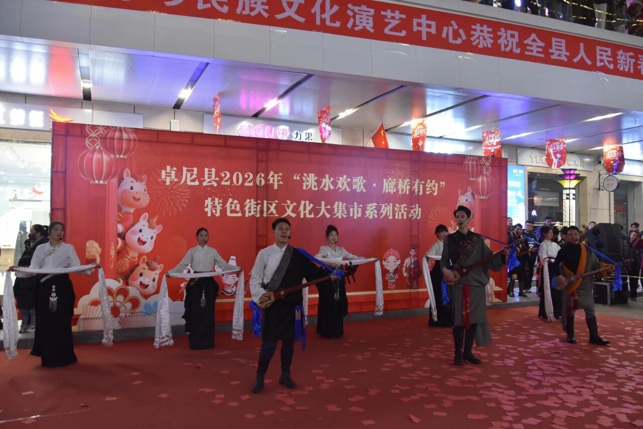 夜幕初垂,洮水河畔的藏王廊桥灯火璀璨。连日来,随着一阵阵欢快的锣鼓音乐声响起,“洮水欢歌·廊桥相约”卓尼县2026年廊桥特色街区文化大集市热闹上演,这座承载着地域记忆的廊桥,瞬间化作年味氤氲、笑语喧腾的新春舞台。