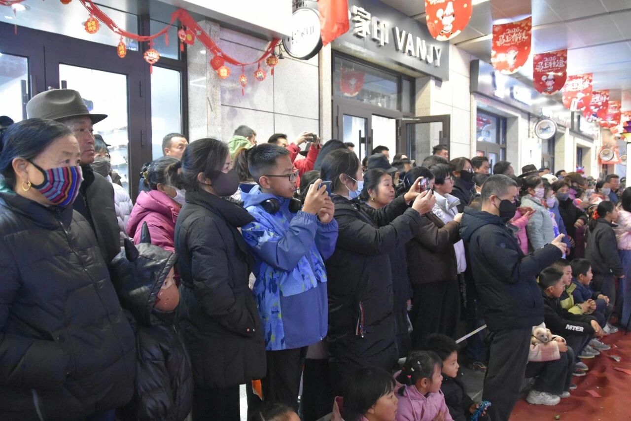 人群中,卓尼县居民后俊平带着孩子穿梭在市集与舞台前,脸上满是喜悦:“这几天晚上我们都来逛,表演精彩,市集也热闹,好山好水好地方,希望更多的朋友们来感受我们卓尼的文化。”舞台侧方,刚结束表演的阿咪啰啰民族文化演艺中心演员多杰,额角还带着汗珠,眼中却闪烁着兴奋的光芒:“能参与这次新春文化大集市的演出,用文艺表演为家乡添彩,感受到大家的热情,特别有意义。”
