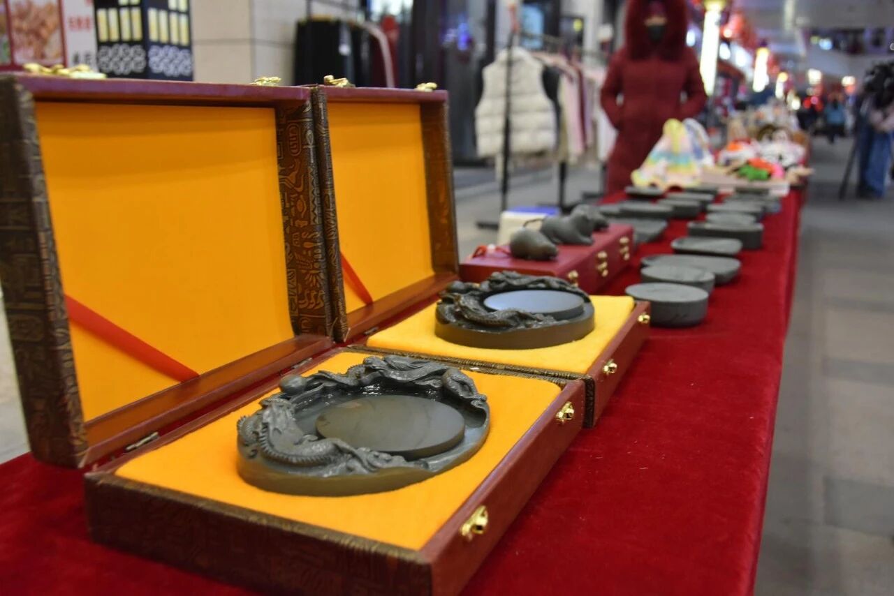 舞台旁的市集区域,更是烟火气十足。摊位一字排开,琳琅满目的商品让人目不暇接:包装精美的野生山珍散发着醇香,是卓尼大地的馈赠;雕工精美的洮砚,凝结着非遗代表性传承人的匠心;民族服饰、文创产品成为游客争相选购的热门。“这个卓尼三格毛姑娘玩偶做工真精致,带着卓尼的特色,买回去送给朋友再合适不过。”来自西安的游客李女士手持刚选购的非遗手工艺品,笑意盈盈地说。摊主们热情地招呼着客人,介绍着每一件商品背后的故事,吆喝声、讨价还价声不绝于耳,勾勒出一幅热闹鲜活的新春市井画卷。