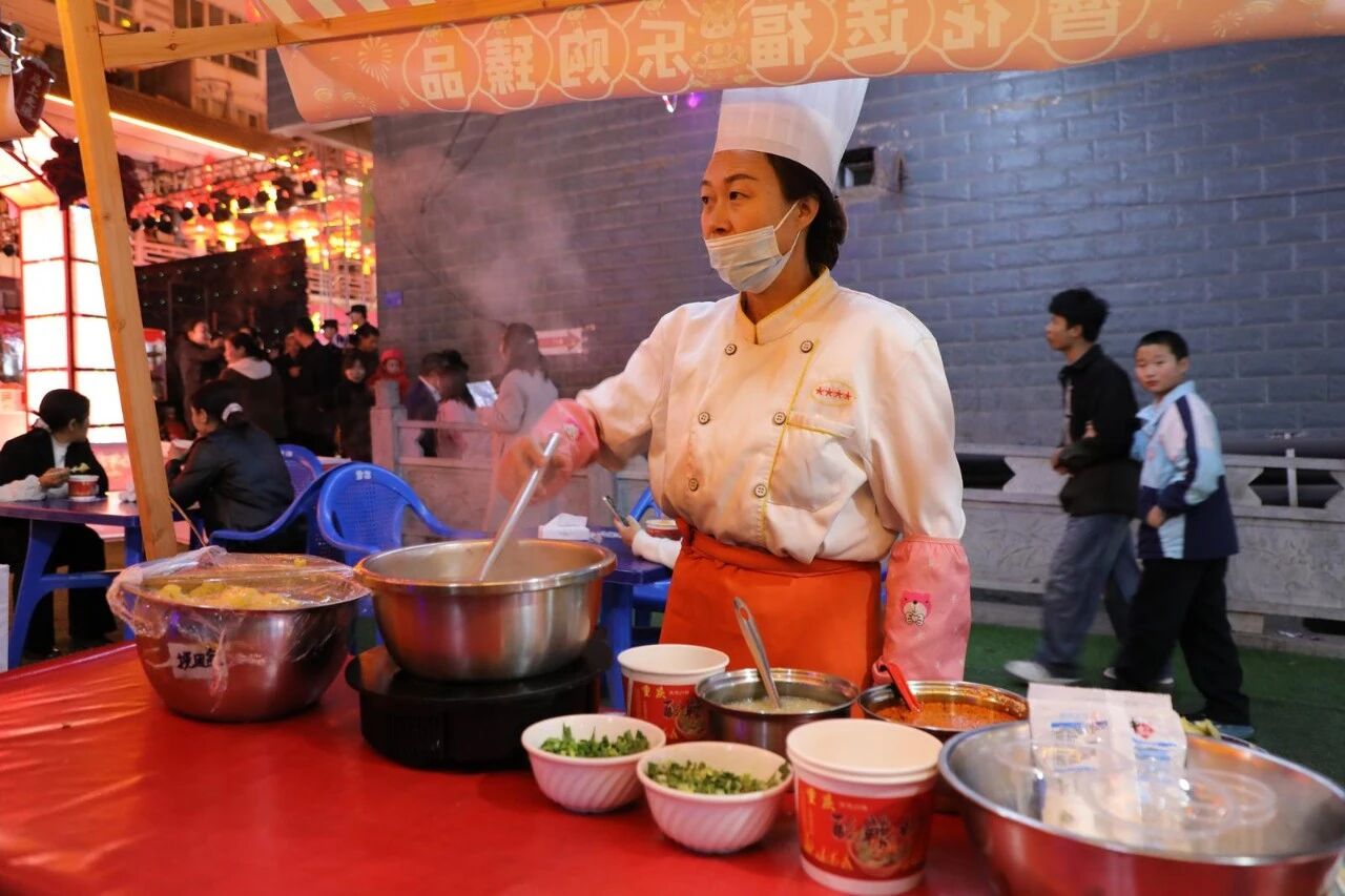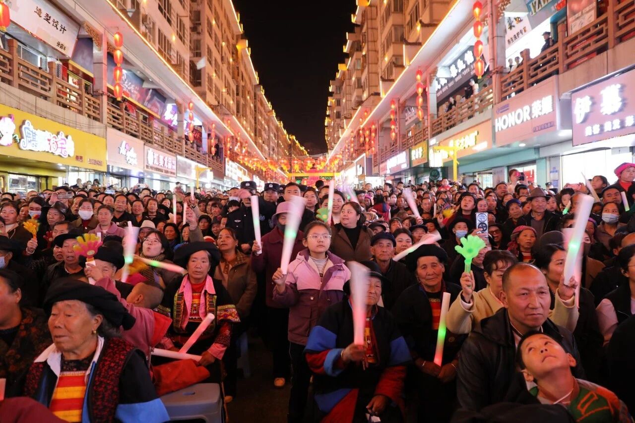 华灯初上,烟火升腾。自元旦起每周五晚七点半,舟曲县城关镇西街(中国第一楹联文化街廊)便成为欢乐的海洋。“西街七点半·文化大集市”作为“冬游舟曲·簪花迎春”系列活动的重头戏,以接地气的夜间展演为核心,迅速火爆全网,成为当地文旅新地标。