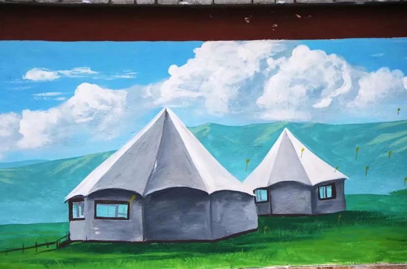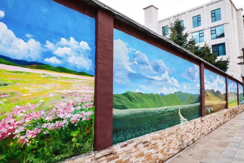 在夏河县的街头巷尾,一幅幅精美绝伦的文创墙绘悄然亮相,成为县城一道独特的风景线。这些墙绘以蓝天、白云、山川、河流、草原、牛羊等元素为背景,生动展现了夏河县的自然风光和民俗风情。