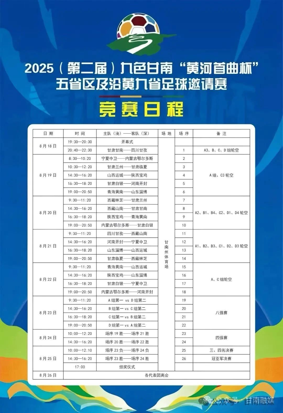 【“黄河首曲杯”足球邀请赛】赛事日程