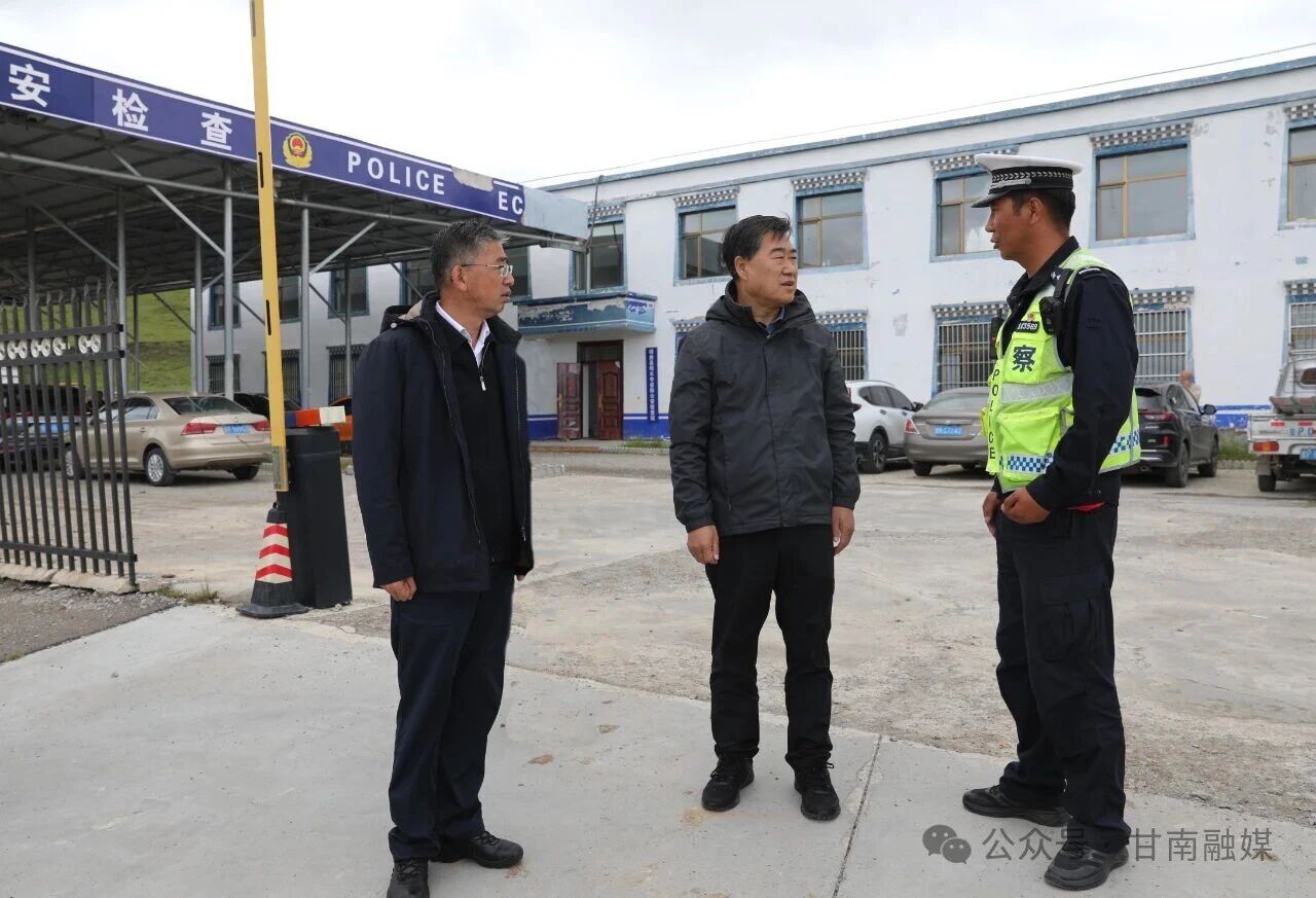 何谋保来到郎木寺镇中心小学和中心幼儿园、郎木寺省际公安检查站、新尕玛路口和县市场监督管理局、卫生健康局、应急指挥中心,深入了解校园安全、道路交通安全、食品药品安全及应急管理工作。他强调,要全面排查校园安全隐患,健全家长膳食委员会监督机制,落实学校食材供应、加工制作、餐具消毒、食品留样全过程监管,守护师生“舌尖上的安全”。要严格交通安全执法,在事故易发路段设立醒目标识标牌和语音播报提醒,依法严惩“三超一疲劳”、违规驾驶等违法行为,提升道路交通本质安全水平。要强化风险意识,优化应急思维,扎实推进应急体系建设,提升防范应对灾害事故能力。要抓实抓细医疗质量安全、依法依规执业、医德医风建设、本土专业人才培训培养,在发现问题、解决问题中提高医疗服务水平。要有效提升检验检测规范化精准化水平,把牢食品药品进货查验、储存管理、源头追溯关口,落细落实经营许可、卫生消杀、样品抽检措施,筑牢食品药品安全防线。