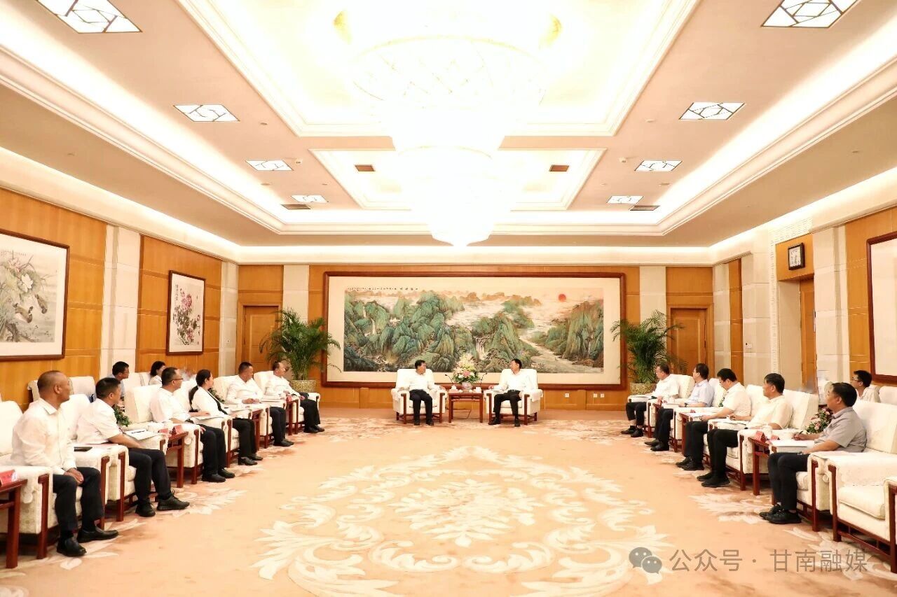 9月10日,州委书记何谋保率甘南州党政代表团赴天津市对接东西部协作工作。天津市副市长王秀峰会见甘南州党政代表团,市政府副秘书长王智毅,市委组织部、市发展改革委、市农业农村委、市国资委等有关负责同志参加。