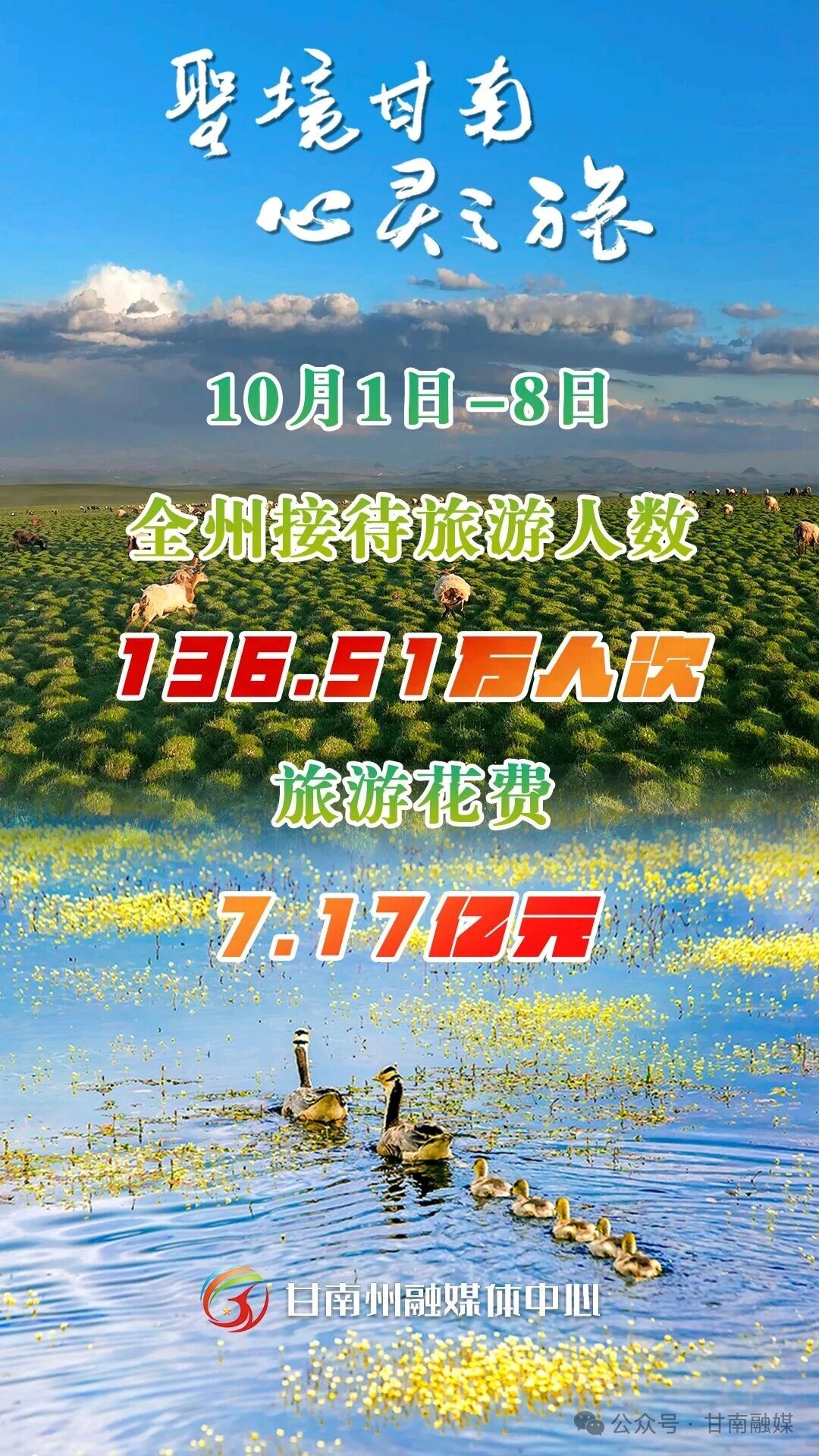 2025年国庆与中秋双节叠加,在过去为期八天的“超级黄金周”,甘南州各地文旅消费热情高涨,旅游市场繁荣向上。10月1日-8日,全州实现接待旅游人数136.51万人次,实现旅游花费7.17亿元,同比分别增长23.26%和26.82%,亮眼数据不仅印证了“圣境甘南·心灵之旅”的独特魅力,更彰显了甘南文旅产业的强劲韧性。