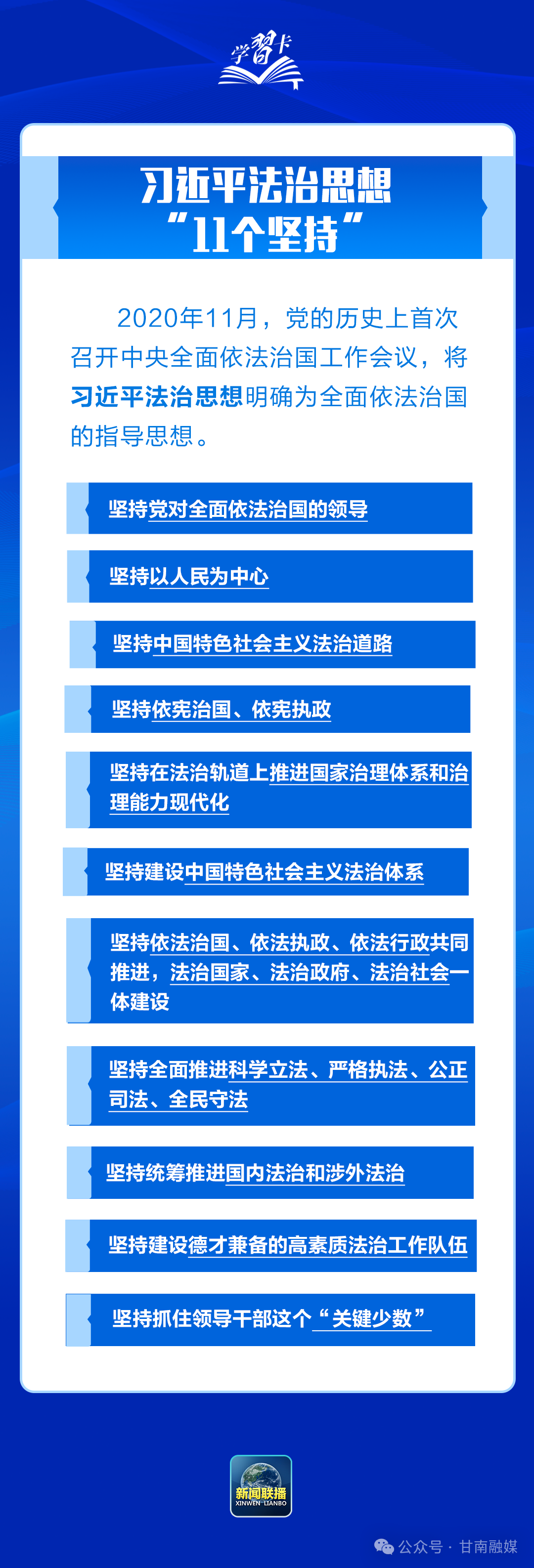 中央全面依法治国工作会议11月17日至18日在京召开。习近平总书记对全面依法治国工作作出重要指示强调,坚持党的领导、人民当家作主、依法治国有机统一,合力开创法治中国建设新局面。