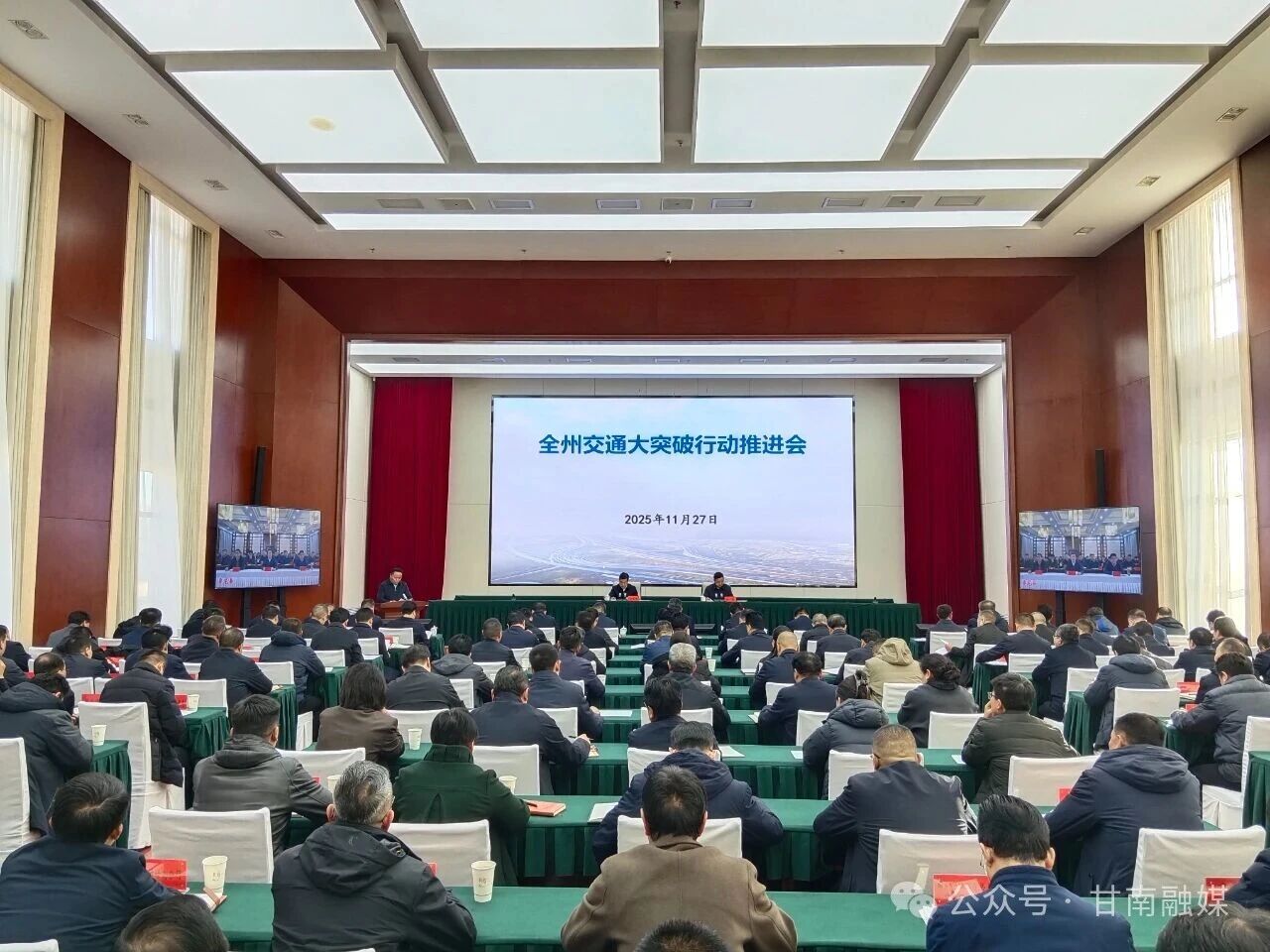冬月初至,金黄色甘南草原虽褪去了葱茏,却难掩大地之下奔涌的发展热潮。11月27日,全州交通大突破行动推进会在合作召开。州委书记何谋保,州委副书记、州长杨武与各县市党政负责人、州直部门代表、重点项目建设单位负责人齐聚一堂,以“总结过往、分析当下、谋划未来”为主线,共商甘南交通突围之策,共绘高原通衢之景。