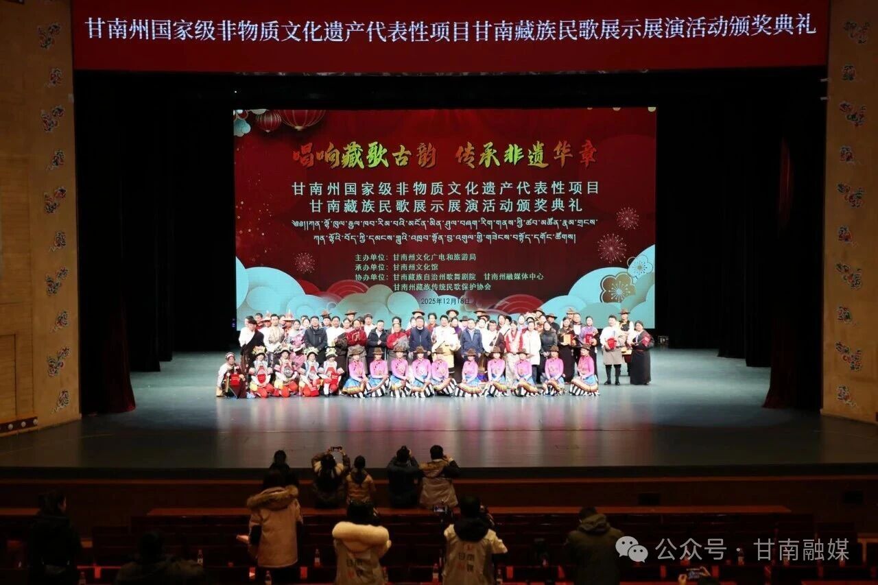 12月18日,以“唱响藏歌古韵 传承非遗华章”为主题的甘南州国家级非物质文化遗产代表性项目甘南藏族民歌展示展演活动在甘南大剧院落幕。