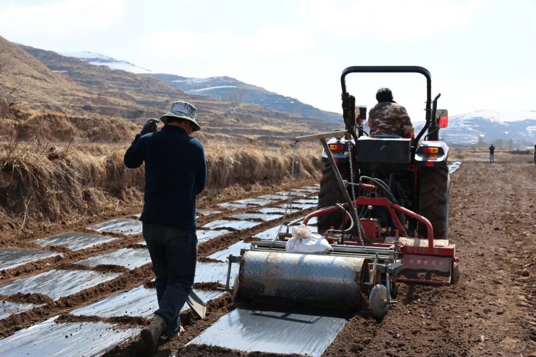 行走在临潭县各乡镇的田间地头,随处可见农户们忙碌的身影,整地、施肥、覆膜……一幅抢抓农时、实干争先的春耕画卷正徐徐铺展,奏响了春日农业生产的奋进乐章。